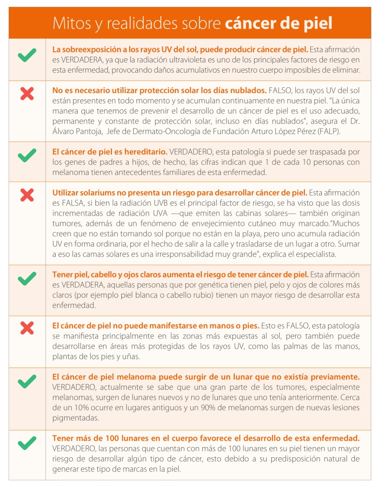 Frente al constante aumento de temperaturas en nuestro país es importante conocer cómo proteger nuestra piel y aclarar los mitos que existen en torno al cáncer de piel.