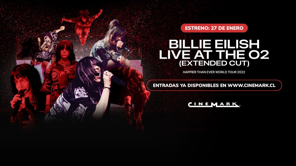 Cinemark Chile inició preventa y con esto se suma, el viernes 27 de enero 2023, a la exhibición de «Billie Eilish: Live At The O2 (Extended Cut)«, dirigido por Sam Wrench, así lo anunció Cinemark Chile a través de la red social Instagram @CinemarkChile.