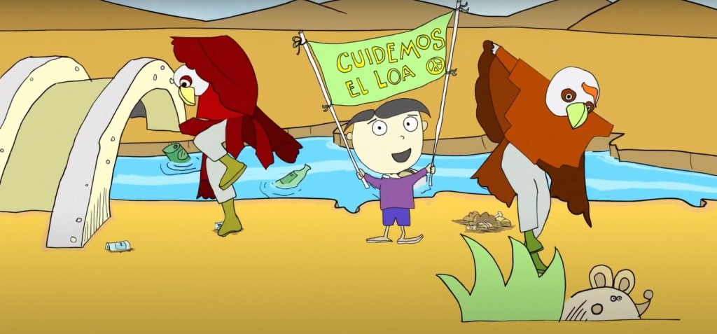 Simone Bezamat explica que “esta canción habla sobre uno de los ríos más conocidos y contaminados de Chile e invita a tomar conciencia y actuar ante la contaminación. Es importante comprender que los cursos de agua son parte de sistemas naturales que permiten que exista la biodiversidad, por ejemplo, la ranita del Loa, en peligro de extinción”.