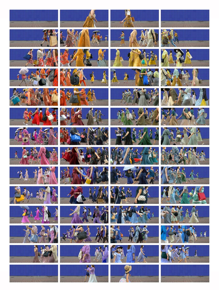 Las obras son inéditas y fueron hechas especialmente durante los últimos tres años para acercar hasta el puerto de Valparaíso a habitantes de la cuenca del Pacífico. Sus obras son parte de una serie llamada “Global Identity Project” y están hechas fotografiando grupos de personas en movimiento en distintas ciudades alrededor del mundo. En la muestra se ven obras con personas caminando en Sydney, Santiago, Shanghai, Tokio, Moscú y Nueva York, entre otras. Las obras, de gran formato, se hicieron durante dos crisis mundiales, la pandemia y la Guerra entre Rusia y Ucrania, las últimas quedando visibles en la serie.