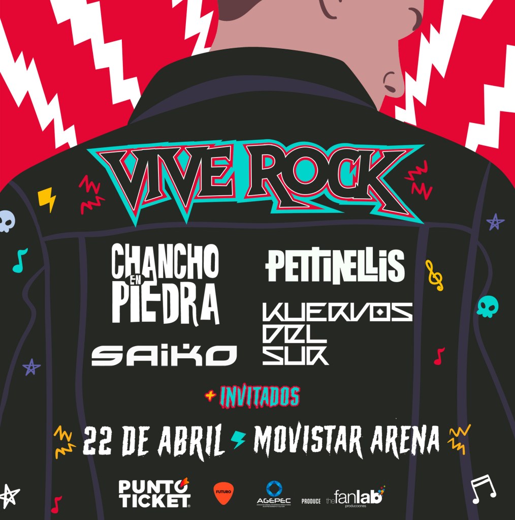 El próximo sábado 22 de abril en el Movistar Arena se llevará a cabo la primera edición del Vive Rock Festival. Esta imperdible jornada que reunirá a lo más representativo de la música chilena, tendrá en su line-up a las exitosas bandas Chancho en Piedra, Pettinellis, Saiko y Kuervos del Sur. Entradas a la venta, desde este jueves 2 de febrero en PuntoTicket.