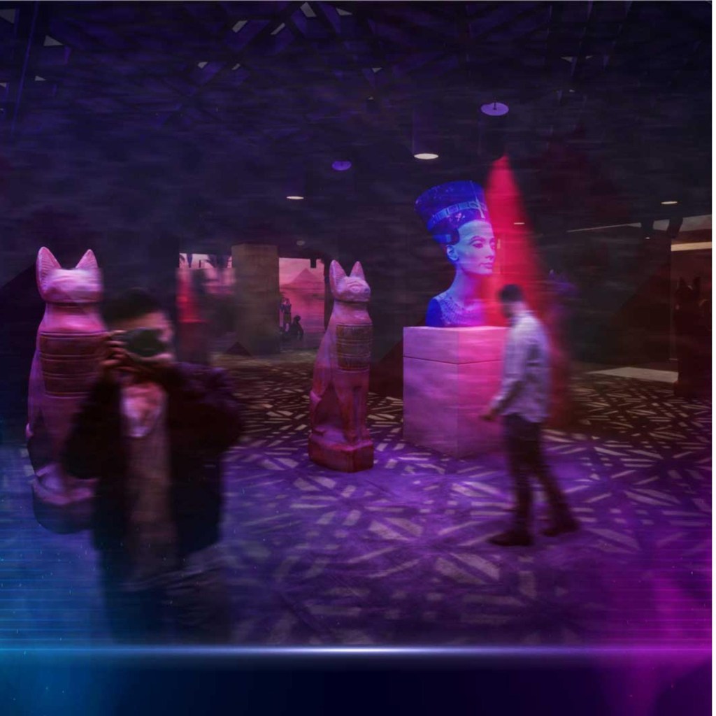 Egipto The Experience es una exhibición que mezcla aspectos museográficos con realidad aumentada y realidad virtual, además de proyecciones y una pantalla envolvente, permitiendo a los asistentes vivir la experiencia del Egipto de ayer con la magia de hoy. “Habrá interactividad dentro de todo el recorrido, desde trivias digitales hasta realidad aumentada, pasando por códigos QR donde la mismísima Cleopatra o Tutankamón relatarán gran parte del contenido en los teléfonos de los visitantes”, explica Gabriel Agosin socio de Centro X.