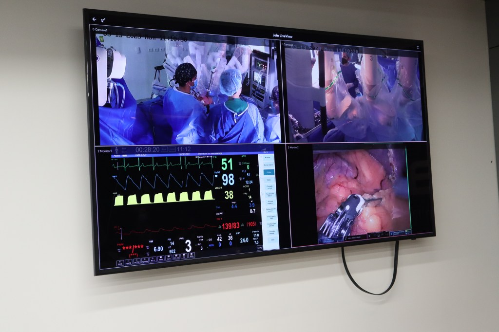 Durante el mes de marzo se realizó la transmisión, en la que autoridades de FALP, NTT DATA, ALLM y la Subsecretaría de Telecomunicaciones, pudieron observar una Nefrectomía Parcial Robótica. A través de diversas pantallas, los asistentes vieron la intervención en vivo y en directo. Imágenes de pabellón, pantallas con signos vitales y el accionar del Robot Da Vinci Xi,