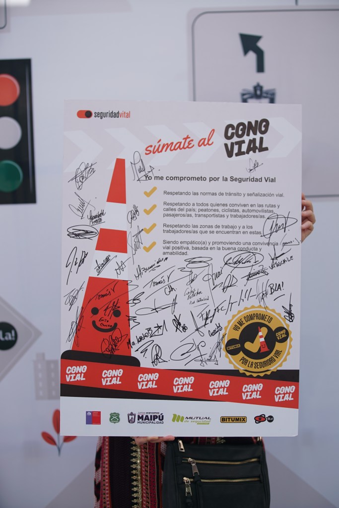 La campaña que busca concientizar sobre los riesgos, alcances y precauciones que se deben tener en cuenta al conducir por las calles y carreteras, es liderada por «El Cono Vial», quién ya tuvo su primera intervención pública en la comuna de Maipú, donde se instaló por primera vez para visibilizar los riesgos viales de trabajadores de la ruta, conductores, ciclistas y peatones. La actividad fue liderada por Bitumix y contó con la presencia de representantes de Conaset, la Mutual Chilena de Seguridad, Carabineros y el alcalde de Maipú, Tomás Vodanovic.