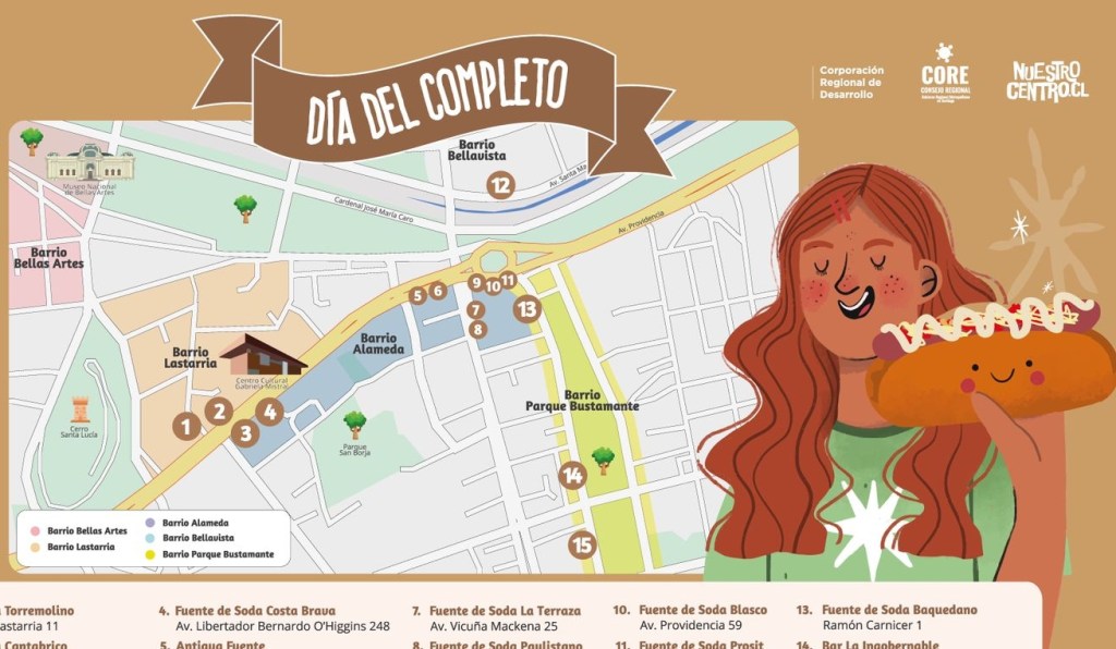 La Ruta del Completo es parte de las actividades del programa Viva Nuestro Centro, impulsado por el Gobierno Regional de Santiago y la Federación Nuestro Centro, compuesta por vecinos, trabajadores, comerciantes y emprendedores de los barrios Bellas Artes, Bellavista, Bustamante, Lastarria y Plaza Italia – Alameda.