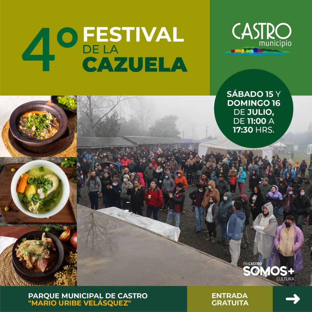 Por lo tanto, la invitación es a postular entre el 08 al 28 de junio, a todas las organizaciones sociales que quieran contar con un módulo en esta cuarta versión del Festival de la Cazuela, que se realizará el próximo 15 y 16 de julio a partir de las 11 de la mañana en el parque municipal de Castro.