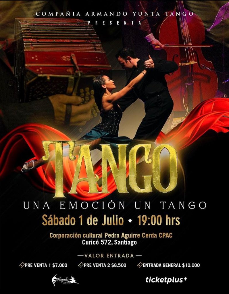 La compañía de teatro, danza y música, Armando Yunta Tango, se presentará en el Corporación Cultural Pedro Aguirre Cerda (Curicó 572) Metro Santa Lucía el día 1 de julio, donde a través de un show multidisciplinario harán vibrar al público, a través de las diversas emociones que produce el tango en los artistas presentes.