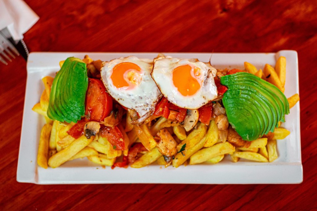 Si lo tuyo no es la carne y quieres optar por algo delicioso y salado, la Chorrillana Veggi con champiñones, tomates asados, palta, salsa cheddar, es la opción.($13.800).