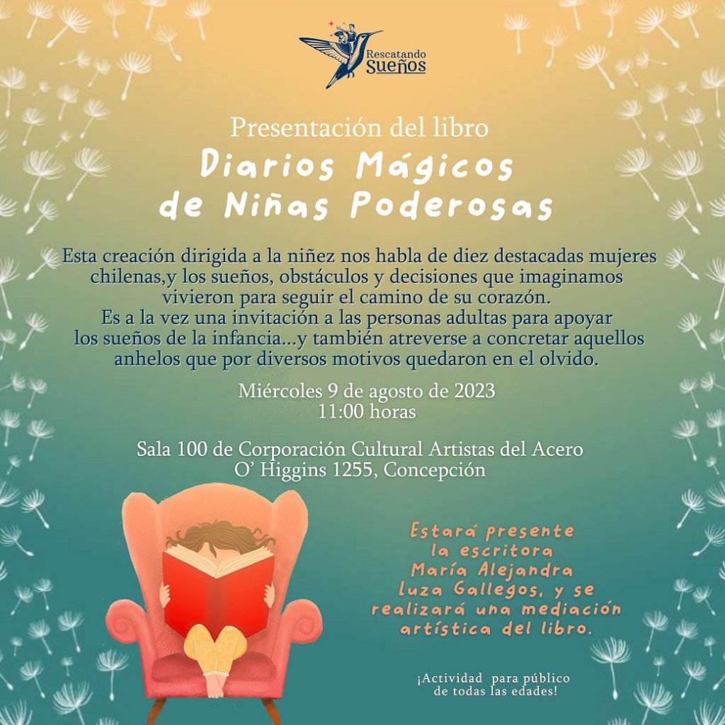 Estas y otras preguntas son las que dieron paso al libro “Diarios Mágicos de Niñas Poderosas”, creado por Fundación Rescatando Sueños, y que será presentado públicamente el miércoles 9 de agosto, a las 11 horas, en la Sala 100 de Artistas del Acero, en Concepción.