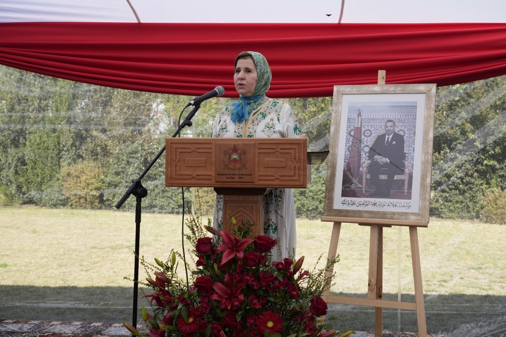 La embajadora del Reino de Marruecos en Chile, Kenza El Ghali, junto a más de 200 personas, celebraron la Fiesta del Trono, la que conmemoró el 24° Aniversario de la entronización de Mohammed VI, actual monarca de dicho país.