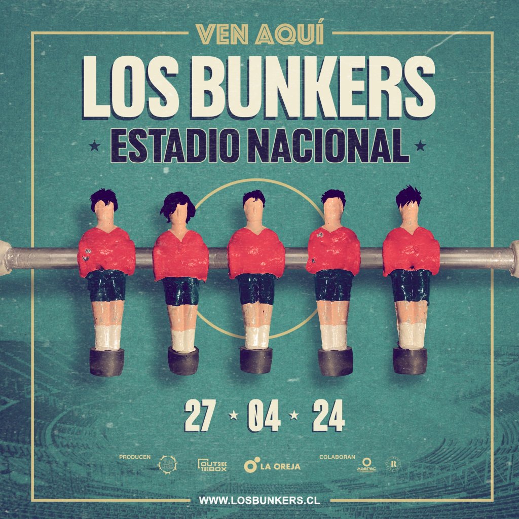 LOS BUNKERS en el ESTADIO NACIONAL. La exitosa banda chilena anuncia su primer espectáculo masivo en el nuevo Coloso de Ñuñoa, el escenario más importante del país, para el 27 de abril de 2024. El ESTADIO NACIONAL, lugar emblemático que encarna la memoria del país, y donde han ocurrido los más grandes eventos deportivos y musicales de la historia de Chile, ha sido escogido por LOS BUNKERS para brindar un show masivo, inolvidable y que no te puedes perder.