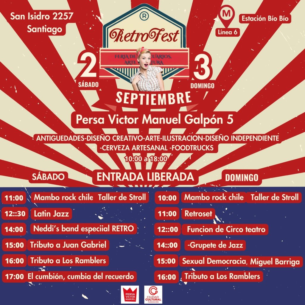 Este 2 y 3 de septiembre, se llevará a cabo en el Persa Víctor Manuel “RetroFest, fiesta de antigüedades, arte y cultura”, que por primera vez llega a Santiago después de exitosas versiones en la ciudad de Talca.