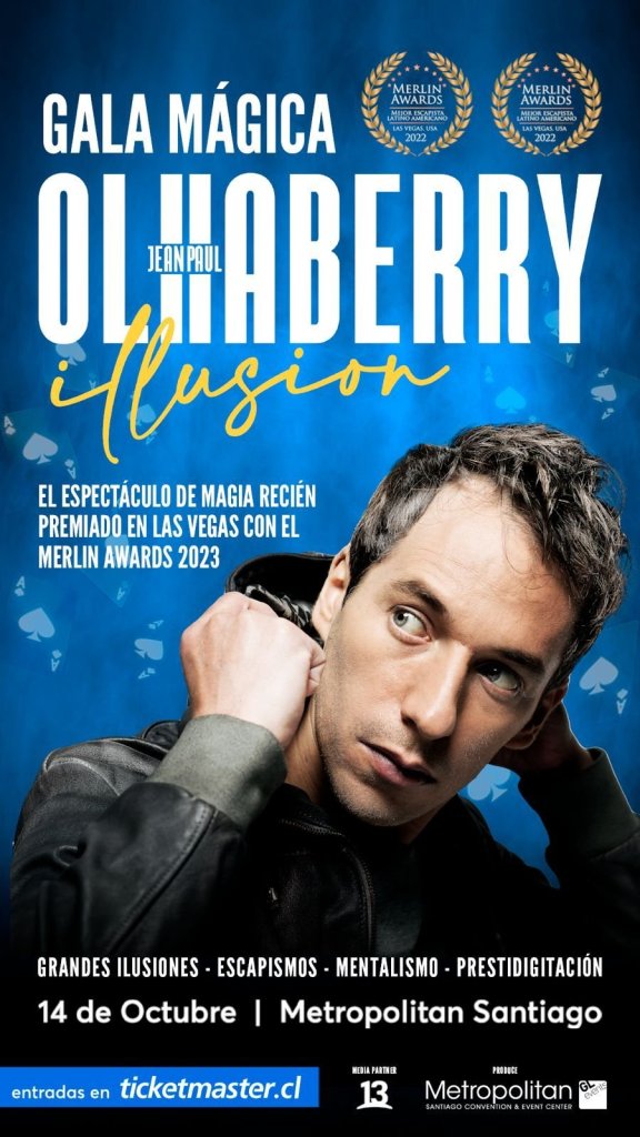 El próximo 29 de septiembre a las 21:00 horas, Metropolitan Santiago será la sede del impresionante espectáculo de magia del ilusionista Jean Paul Olhaberry, “Ilusion”, que el pasado 10 de agosto, en Las Vegas, lo hizo ganador del prestigioso premio Merlin Awards 2023, en la categoría de mejor show revelación del año.