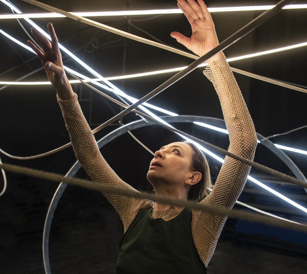 Cuerpos, música en vivo, luz -que se opera de manera performática-, y tecnología convergen en la puesta en escena bajo un dispositivo escénico creado por Siglo22 Arquitectos, que regresa con funciones bajo Santiago OFF y el Festival de Teatro de Quilicura, el montaje además un innovador soporte que permite conocer el pensamiento del científico mediante códigos QR.