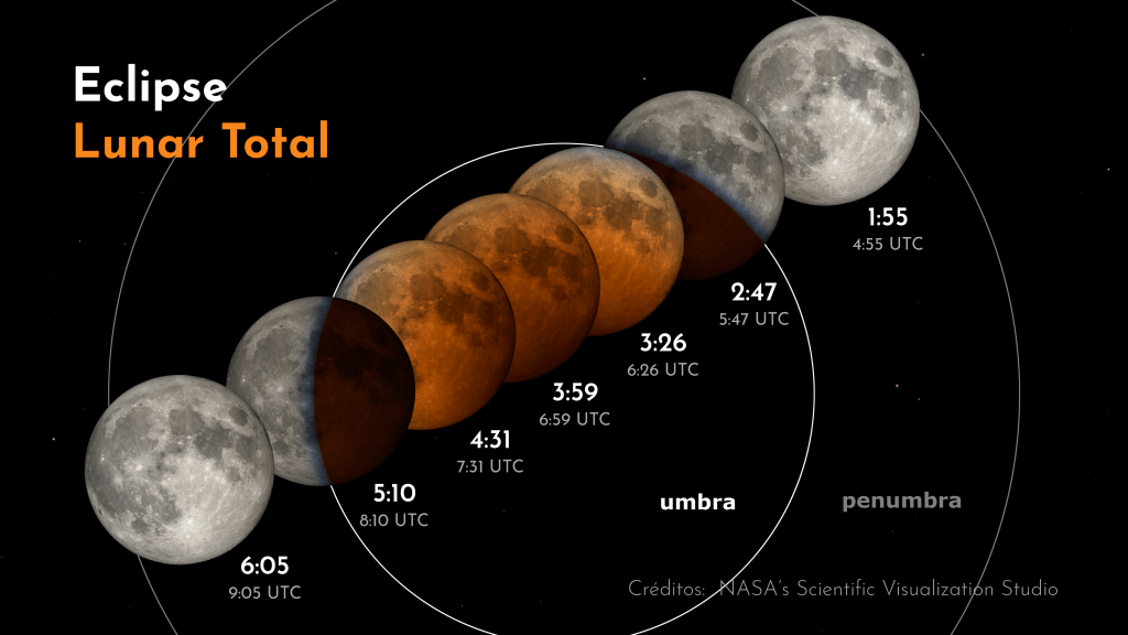 Este 14 de marzo, el cielo tendrá un fenómeno astronómico a seguir: un eclipse lunar total. El evento, que no necesitará de telescopios o binoculares para ser observado, será visible en todo el territorio continental e insular de Chile. La luna comenzará a pasar por la sombra de la Tierra cerca de la 1:00 de la madrugada, y el momento cúlmine ocurrirá entre las 3:26 y las 4:31, cuando la Luna quedará completamente oscurecida, incluyendo un característico color rojizo.